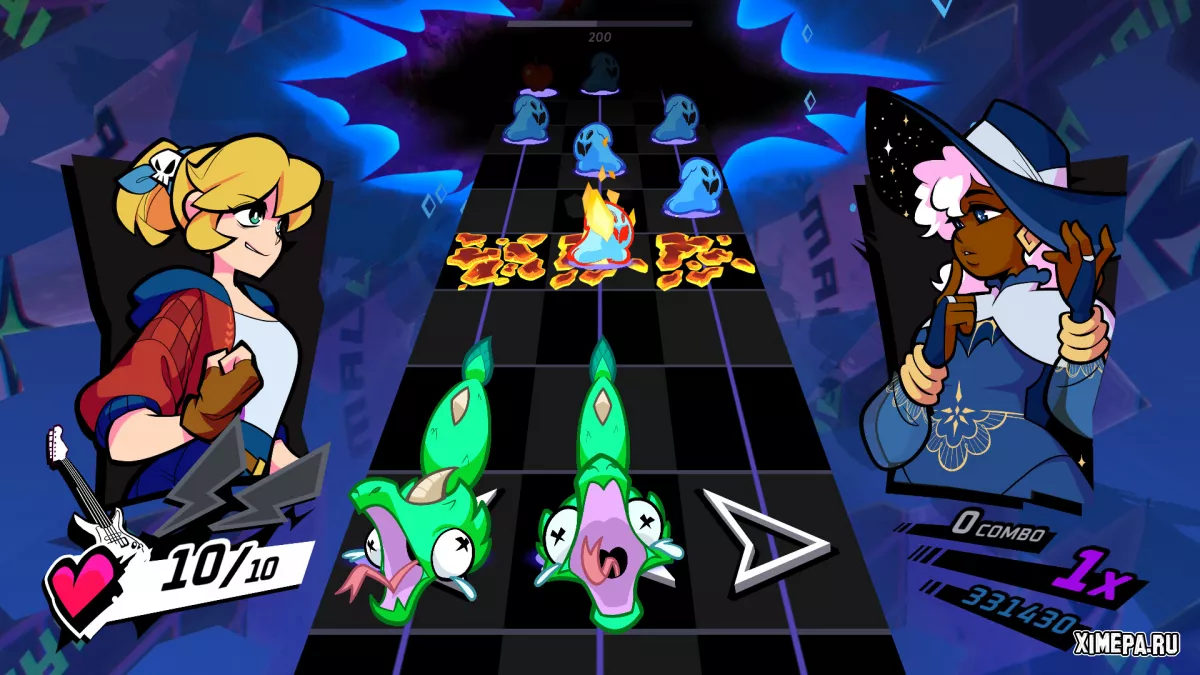 Игровой процесс напоминает классические ритм-игры вроде "Guitar Hero", но добавляет свои уникальные механики. В отличие от традиционных игр жанра, где ноты просто движутся вниз, здесь каждое "нажатие" — это удар по врагу, и разные противники требуют разного подхода. Зомби, слизни, гарпии и прочие твари выходят прямо из разломов, заставляя игрока вовремя нажимать нужные клавиши, чтобы с ними справиться. Со временем появляются новые препятствия, такие как ловушки, изменяющие траекторию движения монстров или ускоряющие их. Даже обучающие уровни могут показаться сложными, особенно если у вас нет опыта в первой части.