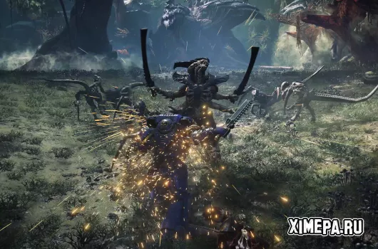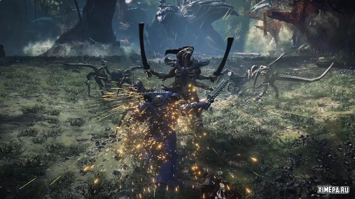 Геймплей представляет собой смесь шутера от третьего лица и ближнего боя, где игроку предстоит быстро переключаться между болтерами и цепными мечами, кроша врагов в кровавое месиво. Боевая система стала глубже: появились парирования, уклонения и добивания, которые не только эффектны, но и играют ключевую роль в выживании, восстанавливая броню и создавая ощущение непрерывного натиска. Тираниды атакуют ордами, а их разнообразие заставляет постоянно менять тактику: быстрые гармагаунты давят числом, зоантропы используют псионику, а ликторы выжидают момент для смертельного удара.
