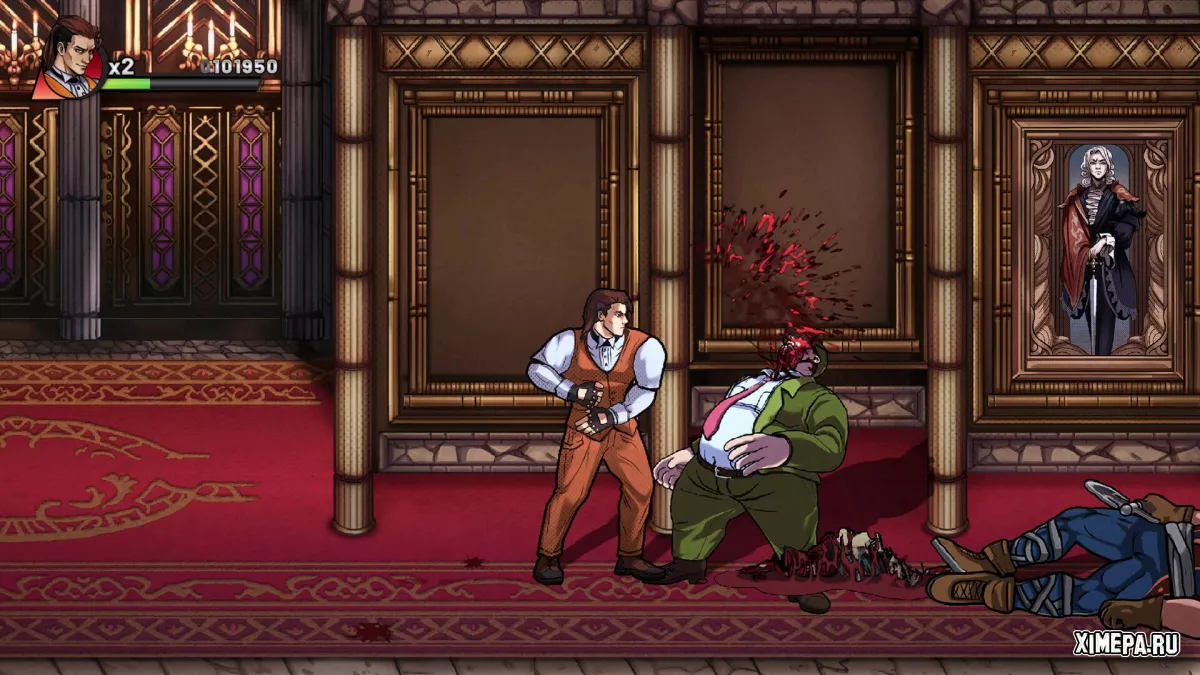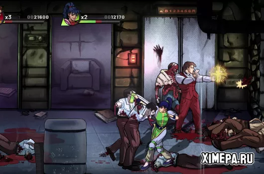 Графическая часть поражает яркостью и кровавыми деталями, создавая атмосферу старых ужастиков. Монстры, от зомби до вампиров, эффектно разлетаются на куски, а бойцы владеют эффектными приемами. Однако анимация местами кажется недоработанной, и персонажи иногда выглядят угловато из-за нехватки промежуточных кадров. Саундтрек и звуковые эффекты вполне соответствуют жанру, создавая драйвовую атмосферу битвы.