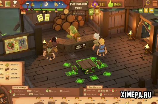 Геймплей строится на управлении процессами в таверне. Игрок не обслуживает клиентов напрямую, а распределяет задачи между работниками, следит за чистотой, ассортиментом напитков, декором и комфортом посетителей. Важную роль играет баланс: слишком мало сотрудников — клиенты уходят, но можно компенсировать это бесплатными напитками. Также алкоголь может портиться, если его неправильно хранить. В игре есть система времени: его можно ускорять, замедлять или останавливать, что удобно для планирования и строительства. Помимо управления, игрок имеет возможность оформлять таверну и настраивать её интерьер, а в режиме свободного строительства доступны более глубокие возможности кастомизации.