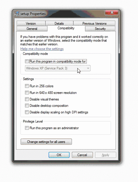 - Запустите инсталлятор с правами, как показано на картинке (меню "Свойства" при нажатии правой кнопки мыши на файле):