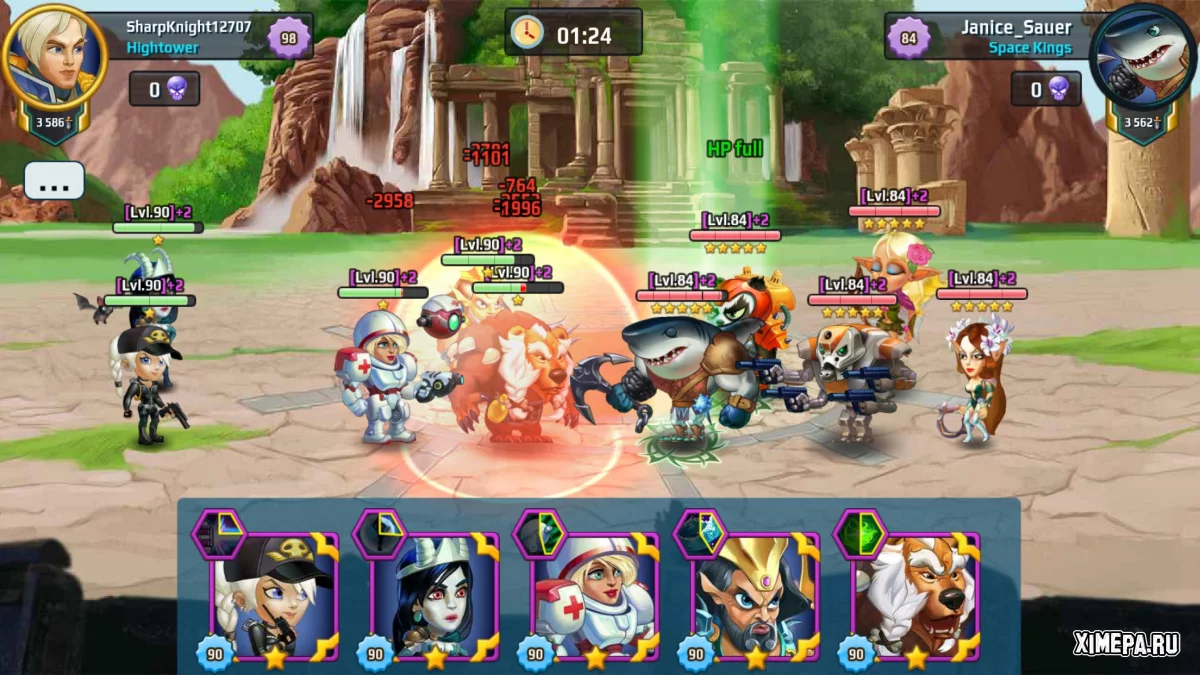 Каждый из персонажей играет одну роль, но может сочетать и несколько: специалист, танк, целитель и убийца. Каждому определена своя линия: задняя, передняя и центральная. Проявите настоящий стратегический талант, чтобы правильно скомбинировать свой атакующий состав, который идеально будет противостоять армии оппонента.