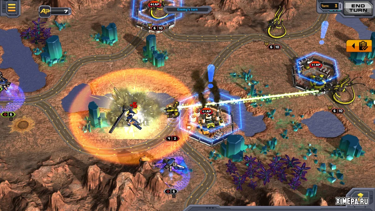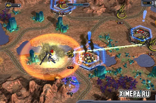 - Комбинация пошаговых боев и строительства базы в реальном времени;